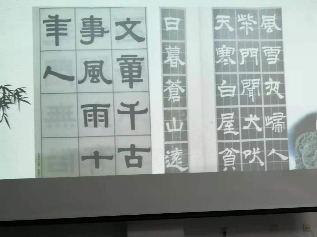 贾汝锐书记从中国书法基本内涵,汉字的起源、发展、书法的形成,给师生们讲授学习书法的意义、方法,介绍楷书的基本形态和不同形态汉字的练习、书写要求和技巧,并分享、赏析了名家书法作品。