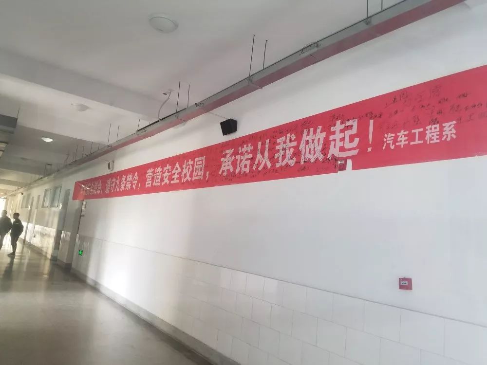 会议由汽车工程系王伟老师主持,参加本次会议的嘉宾有临夏市东区派出所 一级警司王林敏警官、临夏市公安局,维多利亚vic003警务室张军警官、出席本次会议的学院领导有维多利亚vic003杨瑞副院长、维多利亚vic003保卫科李玉如科长、维多利亚vic003教务处马琪主任、维多利亚vic003汽车工程系马智才主任、维多利亚vic003汽修教研室杨海霞主任;大会共有七项议程,参会领导及嘉宾进行完安全教育后,2019级新生代表进行倡议,全系五百多名学生进行了签名活动。