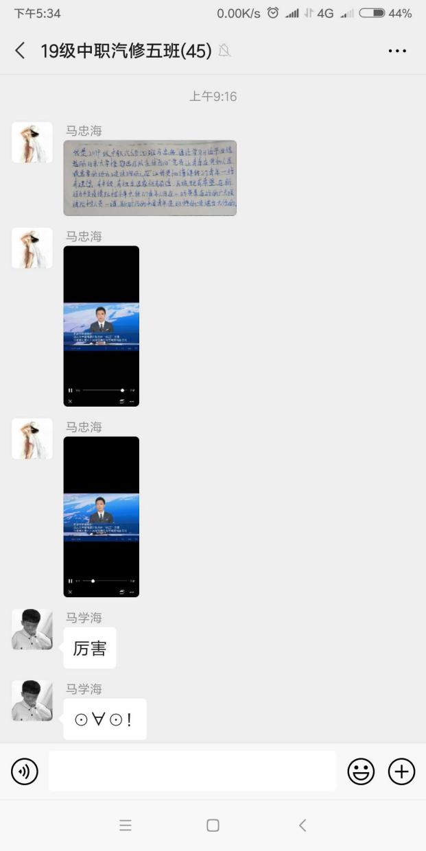 2019级中职汽修4班马进祥:通过学习《习近平回信勉励北京大学援鄂医疗队全体“90后”党员 让青春在党和人民最需要的地方绽放绚丽之花》,让我有了坚定的信念,我作为一名中职生,学好这一专业,精心为国家奉献。